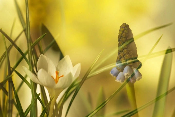 和番红花一起种下的葡萄风信子,本周开始盛开。虽然很小,数量也不多,但依然让我感到欣喜。