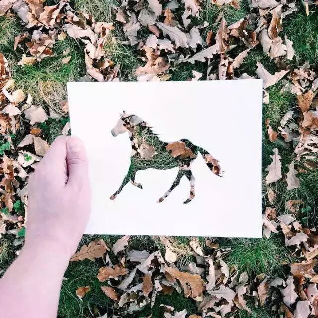 每一张图看起来都是浑然天成,惟妙惟肖。在享受这些视觉刺激的同时,不得不佩服这个创想,简单的一张白纸,一个大自然的背景,却能构造出一个不一样的世界,这创意绝了。