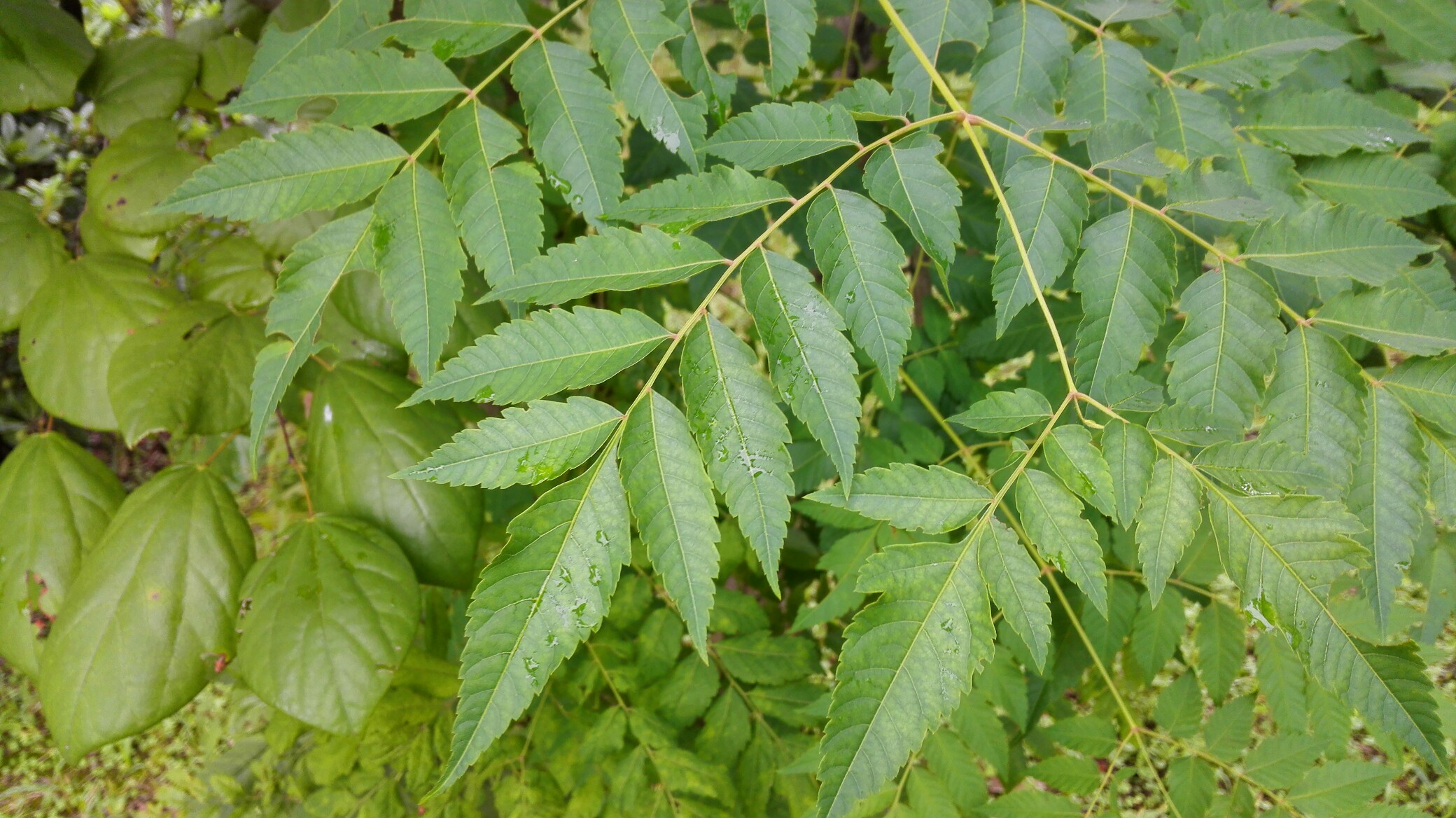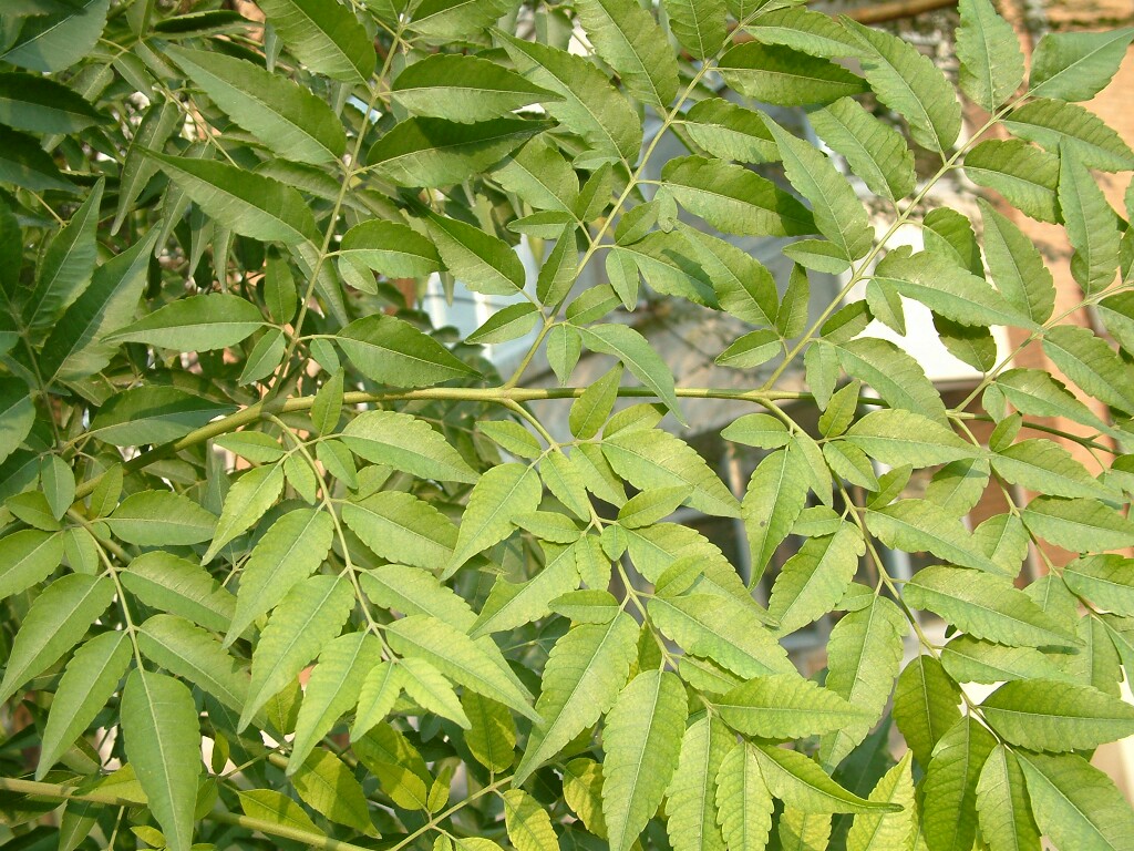 楝树叶,单数复羽叶,对生。