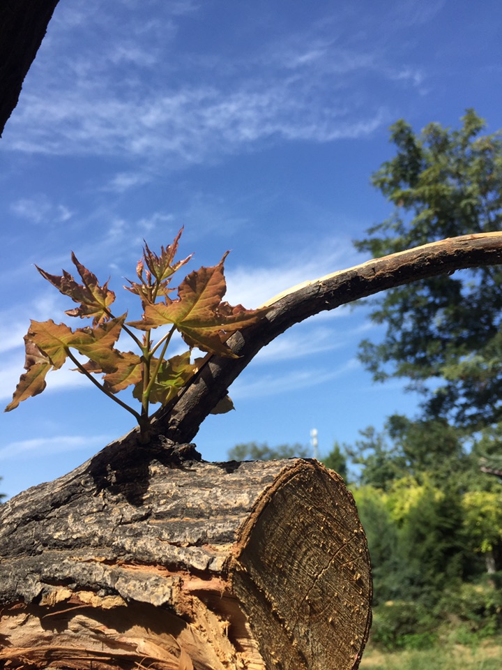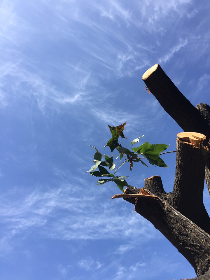 :树半倒状态,风刮的,锯掉一部分,又滋芽了