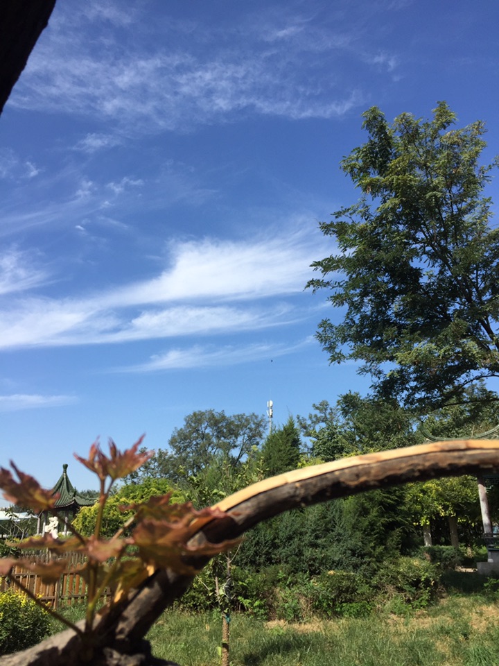 难得的好天气,蓝天白云阳光灿烂。新生的叶子很美。