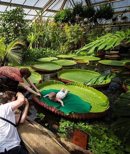 王莲:俗称大王莲,睡莲科王莲属,此属只有两个物种。原产于南美热带,巨型奇特似盘的叶片,直径可达1米至3米;叶子边缘向上折转7~10厘米;上面绿色(无刺)下为深红色,叶盘可承受3个儿童,浮于水面十分壮观。且花色娇容多变的和香味浓厚。