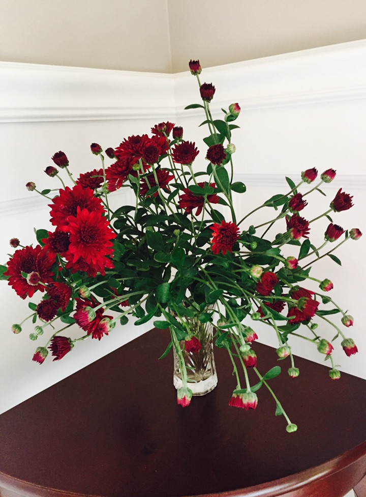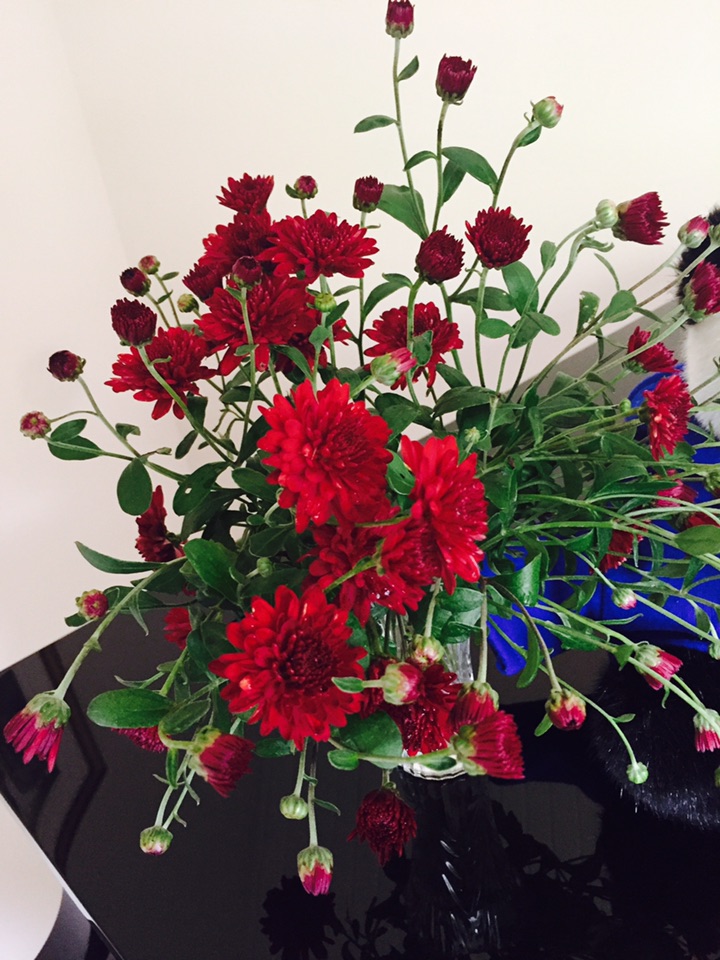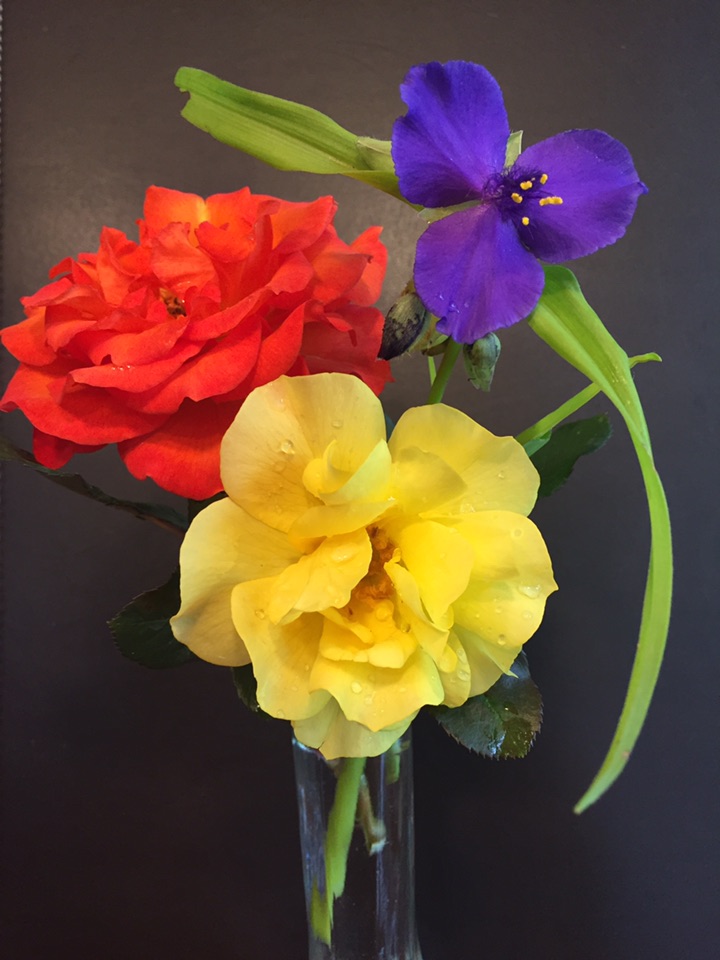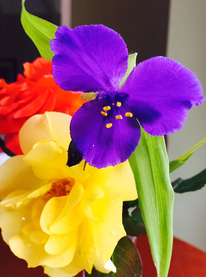 虽说入秋已有一段时日了,最近气温又回升不少,到今天居然有近三十度,犹如夏姑娘不愿离去又嫣嫣然转身而返!早上在园子里转了一圈,除了月季、菊花如常、依然在开放,惊喜地看见紫露草又露出了神秘而迷人的笑脸... 哈哈,于是,有了今天的随意插花😊
