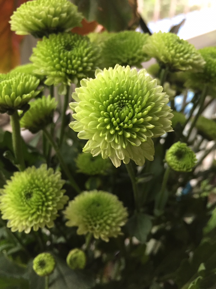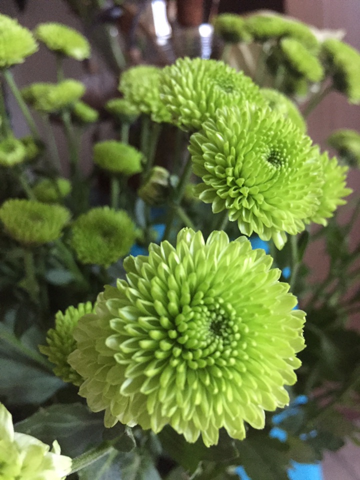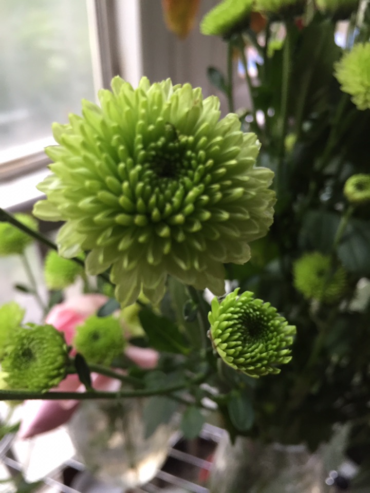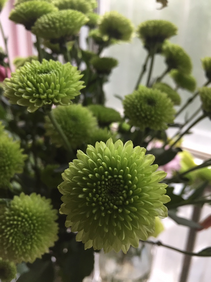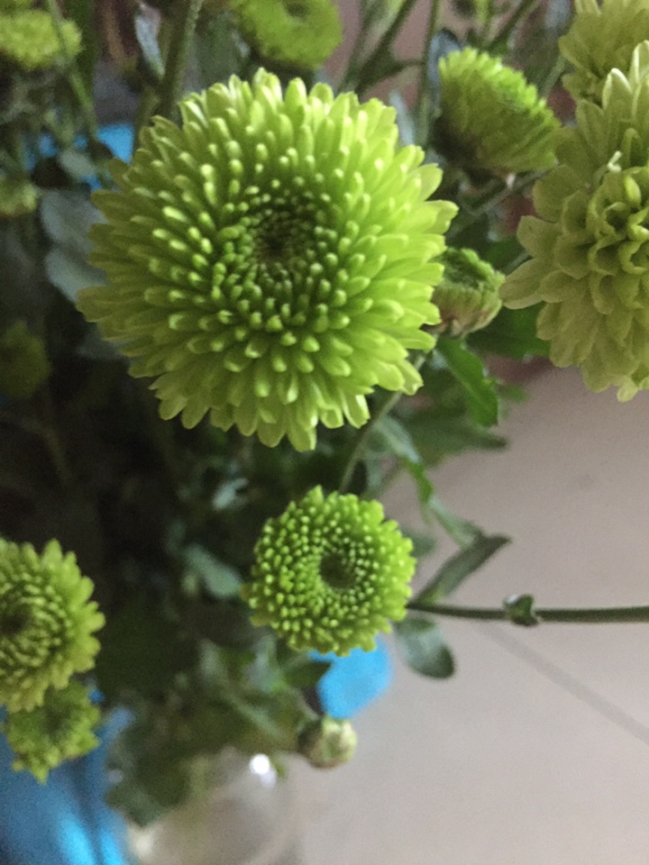 好几天了,每天换换水,开得很好。喜欢这种小绿菊。