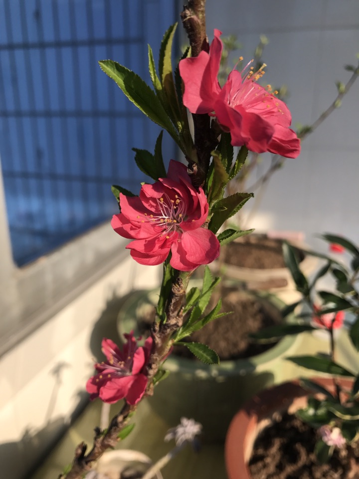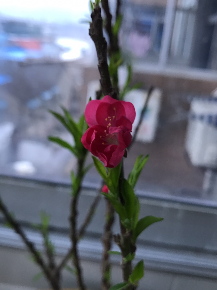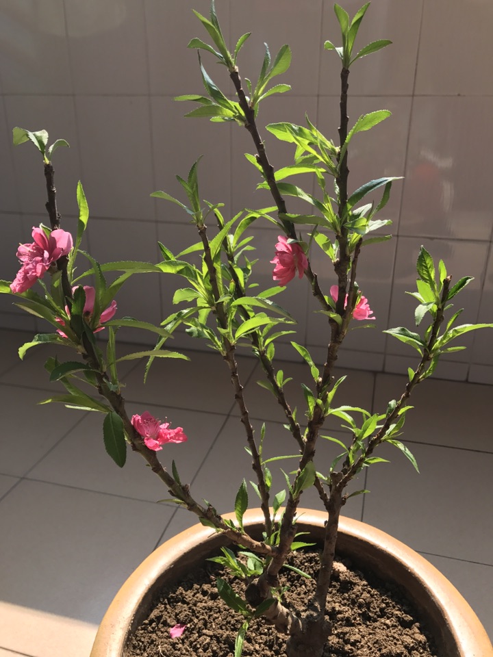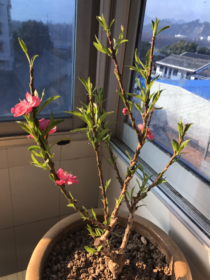 桃花盛开虽仅5朵,却也春意盎然,养花兴趣倍增