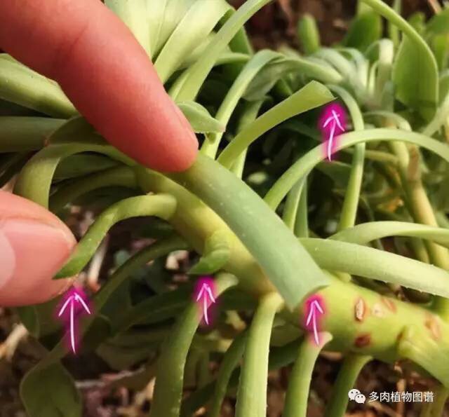 其实这样做还有一个微妙之处,就是出芽点在叶柄内侧(即叶柄与主干夹角内),向下掰时不会挤压到出芽点。