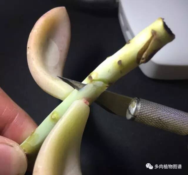 下图以玉露和克拉夫为例演示切也。并且以克拉夫破坏芽 点后叶插发芽的照片作为举证,有图有真相。