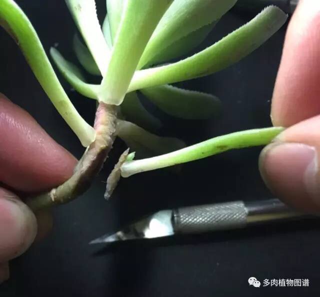 以上五法走以应对决大多数的情况了,但总有些叶片生得就是那么结实,怎么掰都是有一小块留在主干上,比如玉露叶片。好吧,软的不行我们就来硬的。