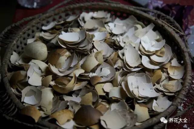 就晾干好的蛋壳捣碎。这一步很容易操作,晒干的蛋壳非常容易捣碎,不需要弄得太碎。