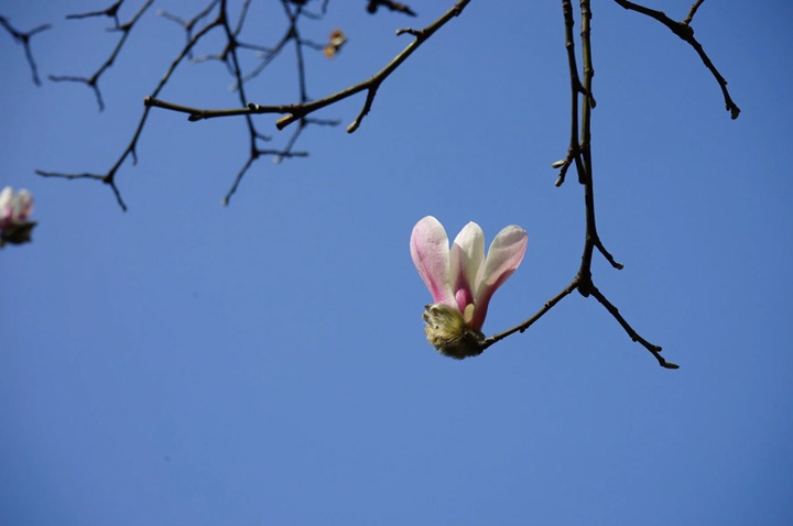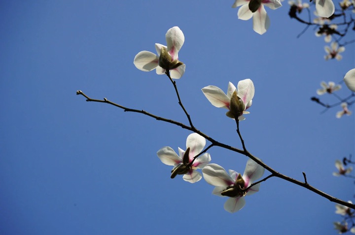 和大多数低矮的花卉不同,玉兰总是在空中绽放,舒展花瓣,迎接阳光。你对它只能仰观或仰拍,因此,手机是很难拍好玉兰的。