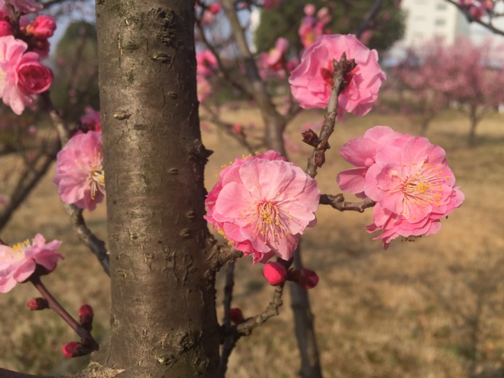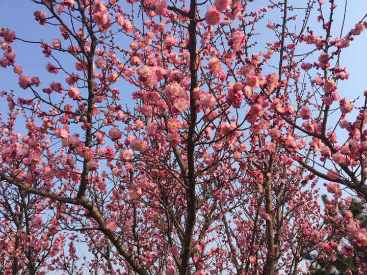 众芳摇落独暄妍,占尽风情向小园。學校的梅花盛開了。,春光無限好呀!