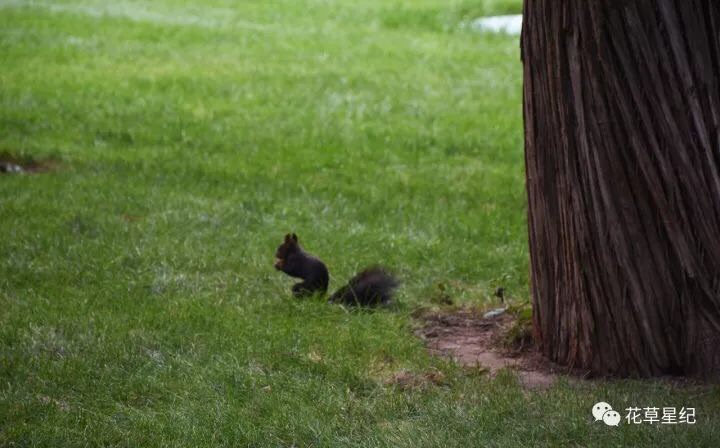 景山北部一大片绿草坪中偶遇三只小松鼠,这只正在享受它的美食
