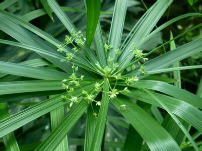 风车草(Cyperus alternifolius L.)又名伞草、旱伞草、台湾竹,是莎草科莎草属多年生草本植物,株高60-150厘米;茎近圆柱形,直立无分枝;叶顶生为伞状;聚伞花序,有多数辐射枝,小穗多数,密生于辐射分枝的顶端,花两性,花果期8-11月。原产于非洲,作为观赏植物,中国南北各省均有栽培。
