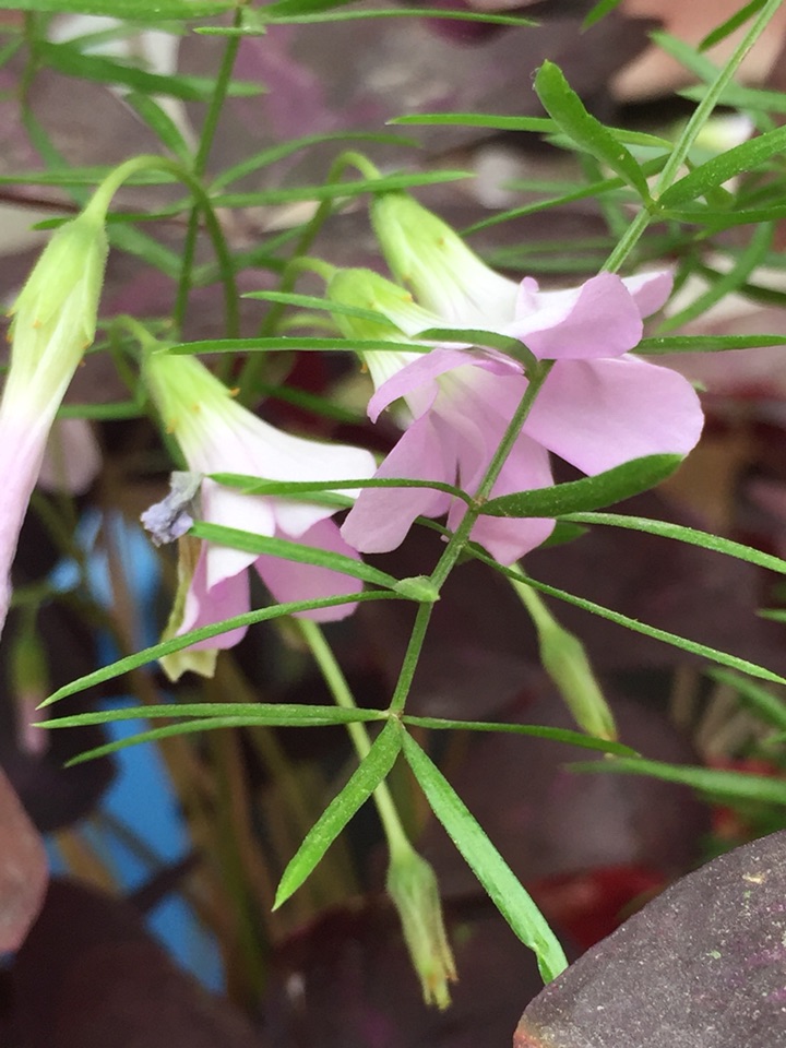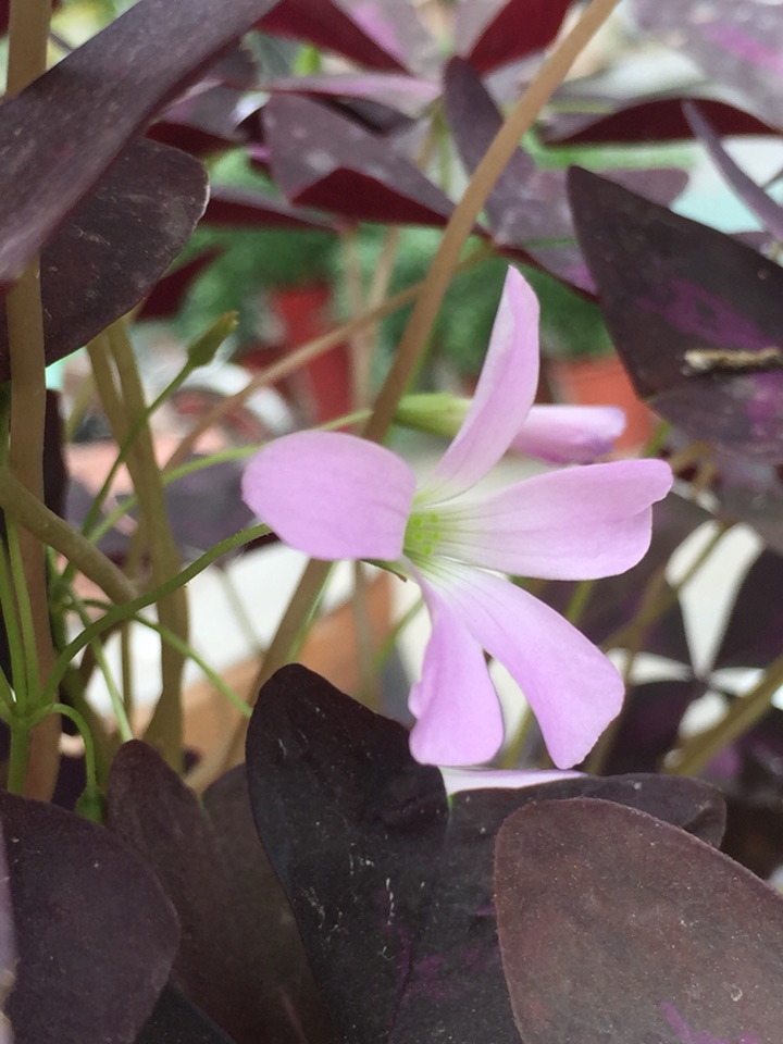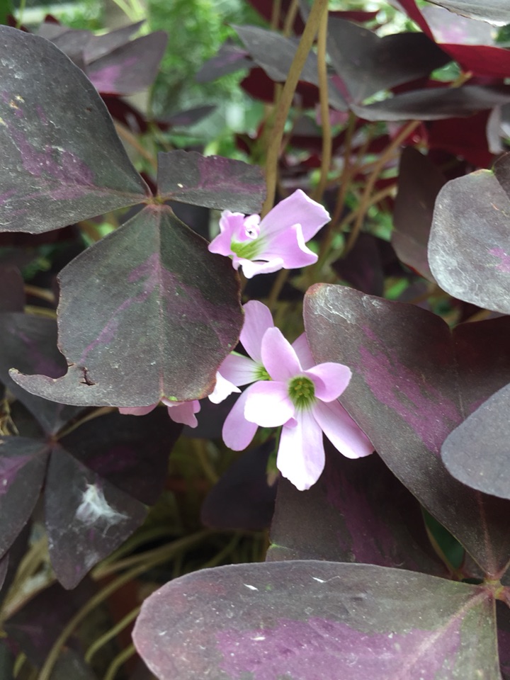 紫叶酢浆草,叶子像蛱蝶飞,花朵清新可爱。