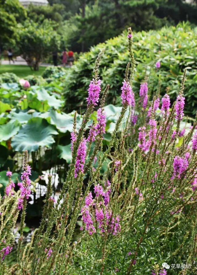 原来千屈菜早就被用到了园林的水景中,因为它的株丛整齐,耸立而清秀,花期长,花朵也非常繁茂,是水景中优良的竖线条材料,也又会被叫水柳,非常适合在浅水岸边或池中栽植。也可作鲜切花,用来插花。