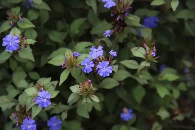 蓝花丹,更多的时候会被叫做蓝雪花。这里还是要说明一下常见的蓝花丹Plumbago auriculata Lam. ,是南非挖来的植物,而蓝雪花之名应该属于 Ceratostigma plumbaginoides ,一种我国特产的美丽植物。但是由于其观赏特性多少还是比蓝花丹差了一些,以至于被国人冷落,还被蓝花丹窃取的蓝雪花的名头。