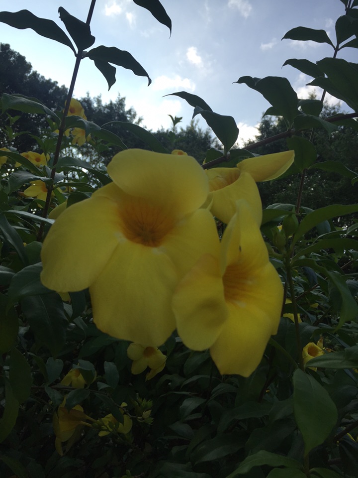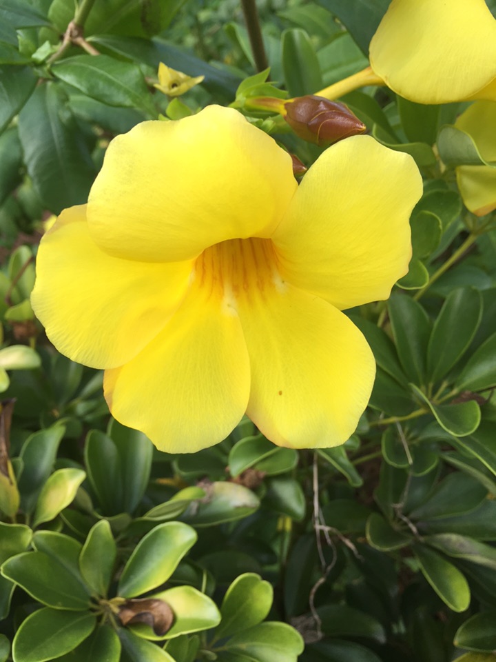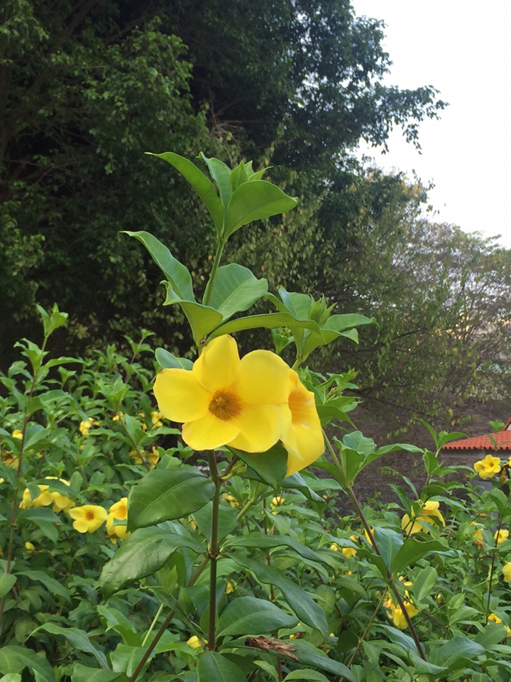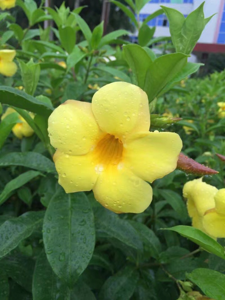 其实,黄色的花儿更容易吸引人,或许是因为它的热情活泼。黄蝉更是如此,柔软的枝条,耀眼夺目的花儿,顾盼生辉,让人情不自禁地被深深吸引。