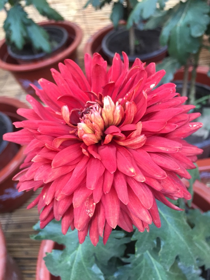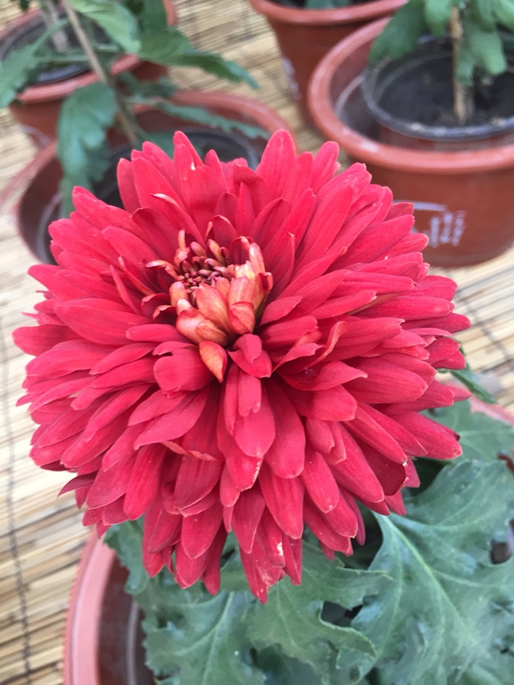 红色的菊花,这种颜色不是很多。是与秋日气氛不太相称吗?