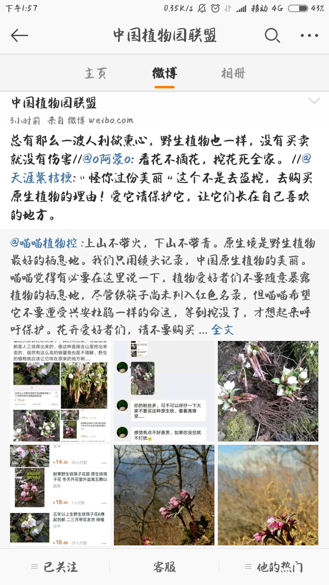 这是微博的一个号,今天刷微博时看到的。铁筷子,我没有栽过,但是看过许多图片,园艺改良品种真的可能要好看一点儿。借博文的一句话,不要等到挖没了,才想起保护。