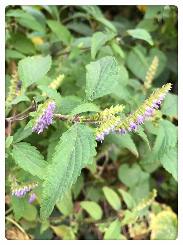 唇形科、香薷属植物,直立草本,密集的须根。茎通常自中部以上分枝,钝四稜形,具槽,无毛或被疏柔毛,常呈麦秆黄色,老时变紫褐色。叶卵形或椭圆状披针形,穗状花序,花梗纤细,近无毛,花萼钟形,花冠淡紫色,花丝无毛,花药紫黑色。花期7~10月,果期10月至翌年1月。
