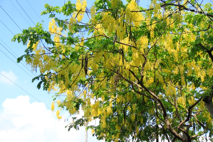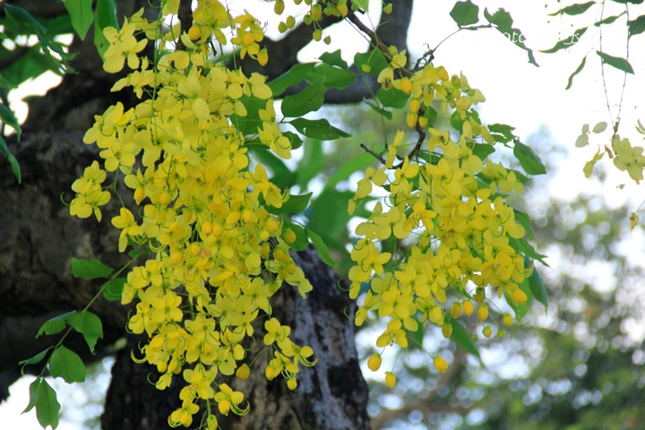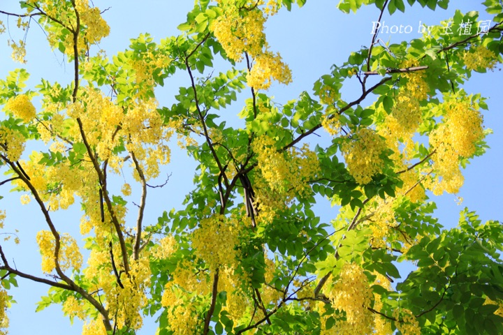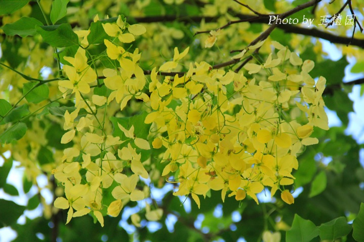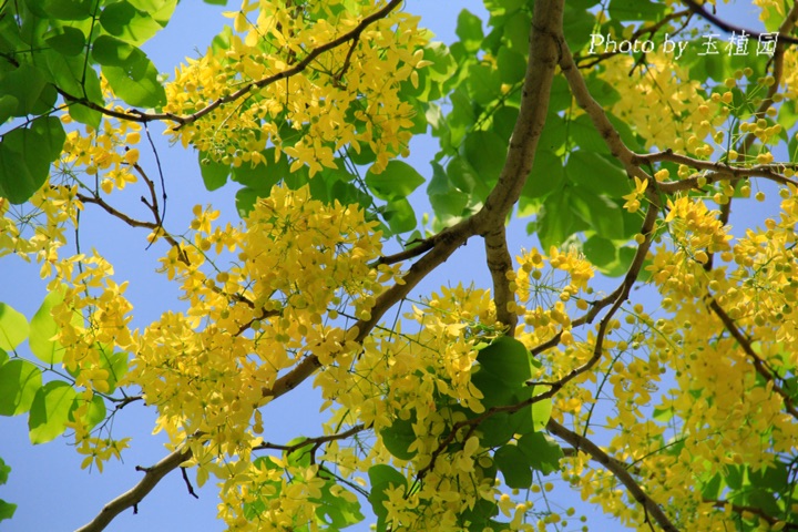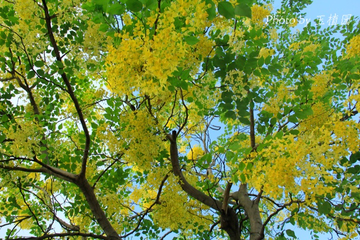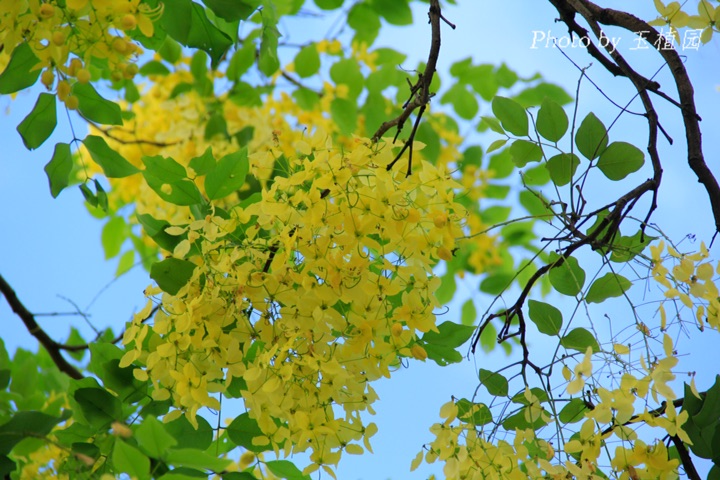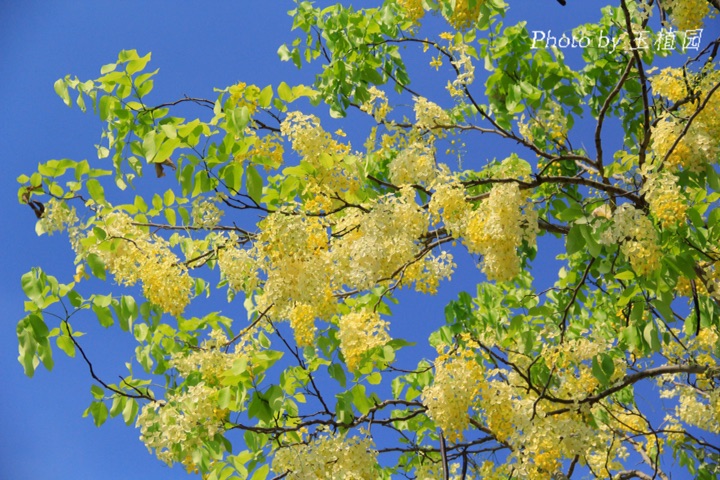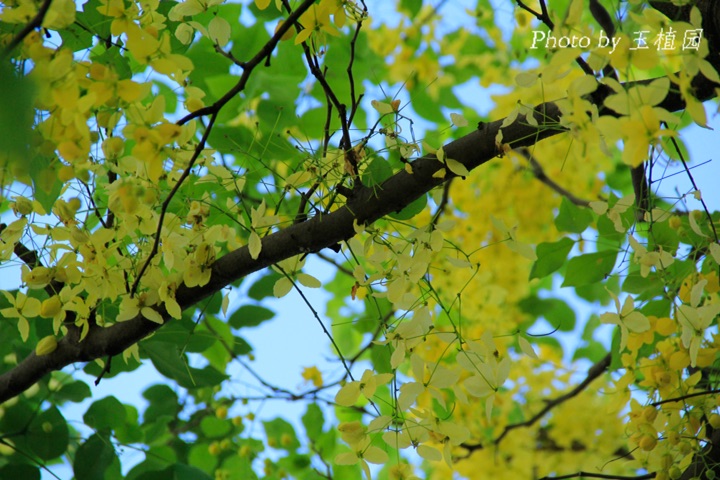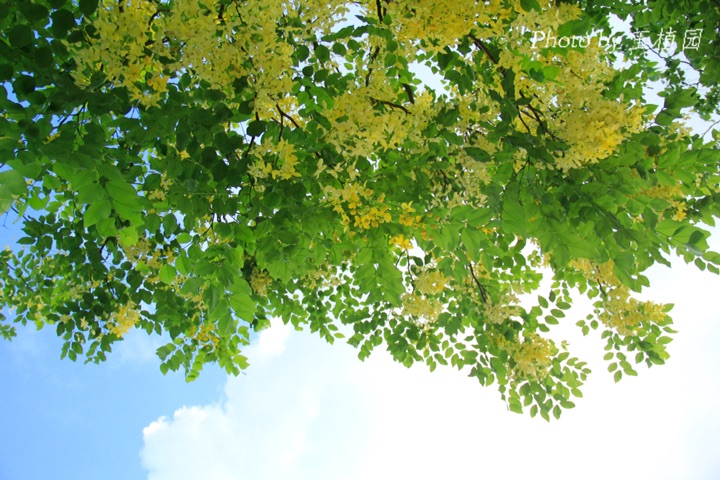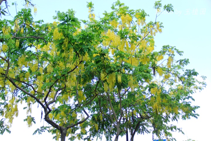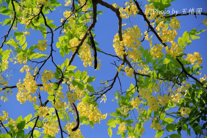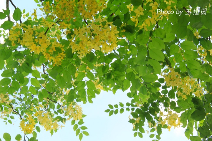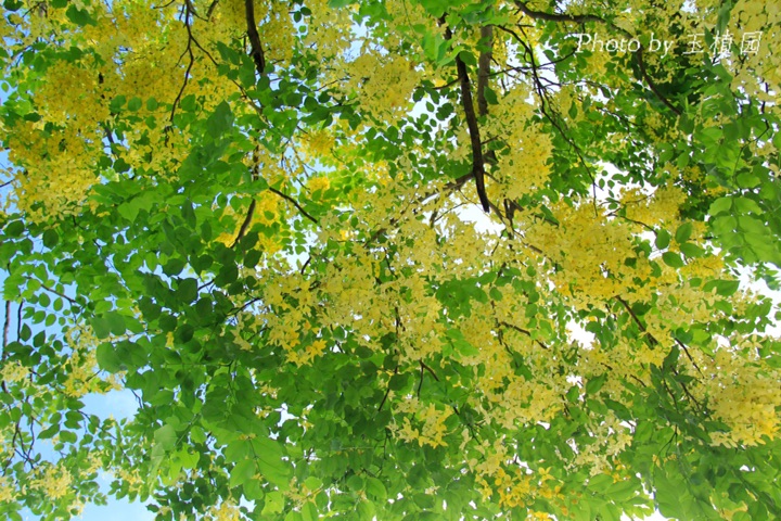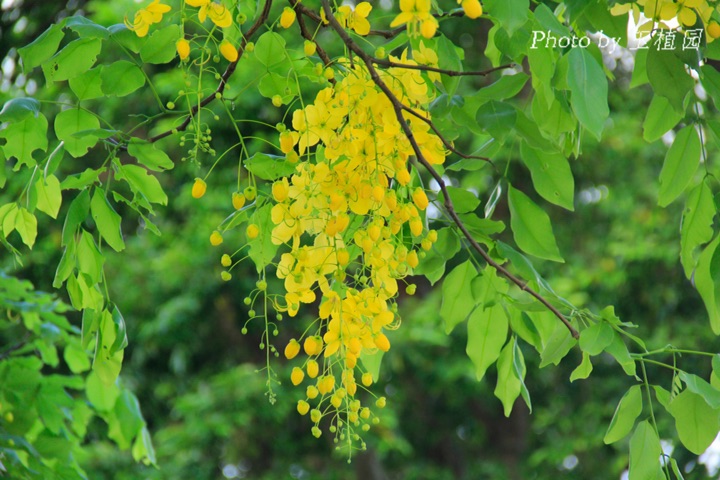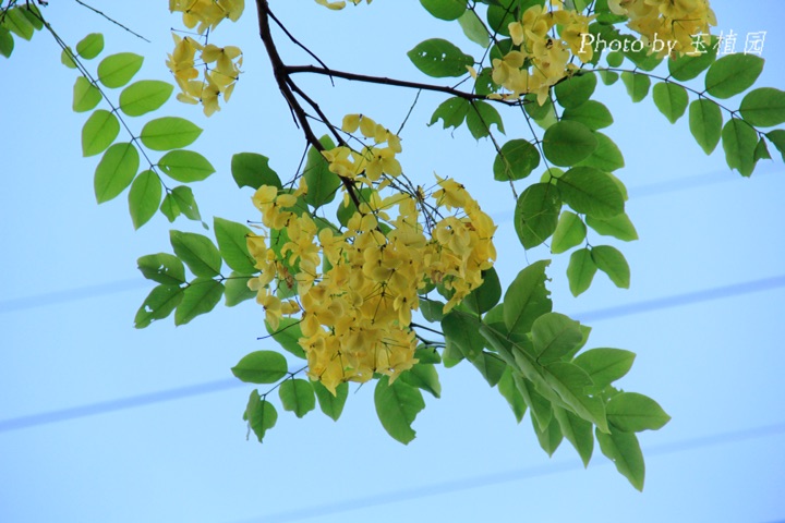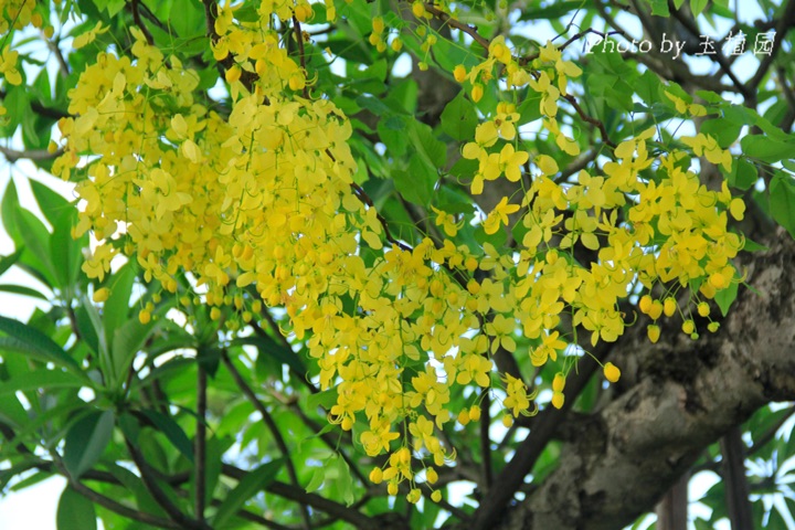 腊肠花的花梗柔弱,花苞多,开花时长而弯曲的绿色花丝从花心伸出,萼片往外翻折,五片花瓣独立成片连缀在花托上,并向上弯曲成小贝壳的弧度。细看花姿会有些潦草,但也正是这份凌乱使得挤挤一团的花瓣并不显累赘,反而有一种蓬松而梦幻的美感,就像是尝了一口奶油蛋糕,口感松软,甜而不腻。“红花还需绿叶衬”,其树叶对生,翠绿光滑,基部圆润,顶端渐尖,展现出清晰的轮廓,与朦胧的花姿正好互相映衬。
