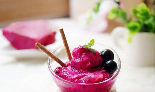 榨汁:火龙果皮最好的吃法就是榨成汁加点砂糖,冻到冰柜里口渴的时候拿来饮用,清甜可口,消暑解渴。