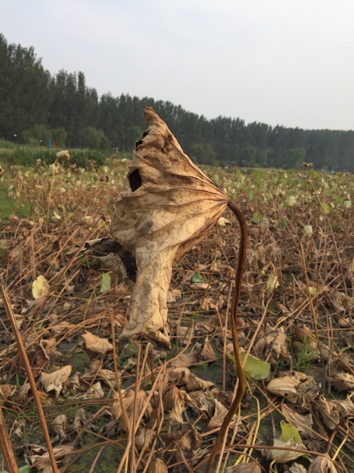 夏日里的美丽退去,片片枯败的荷叶,一直觉得这是秋另一个明显的信号。会让人想到寒冬即将来临,会让人觉得暮年将至,会让人不那么喜欢。喜欢也罢,不喜欢也好,大自然按着自己的节奏,周而复始,辗转轮回。要做的只是珍惜,珍惜眼前,珍惜现在,珍惜点点滴滴的幸福。