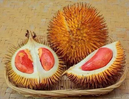 ▼金黄的榴莲营养丰富,而这个橘红色的榴莲真的不是跑错了地方么?