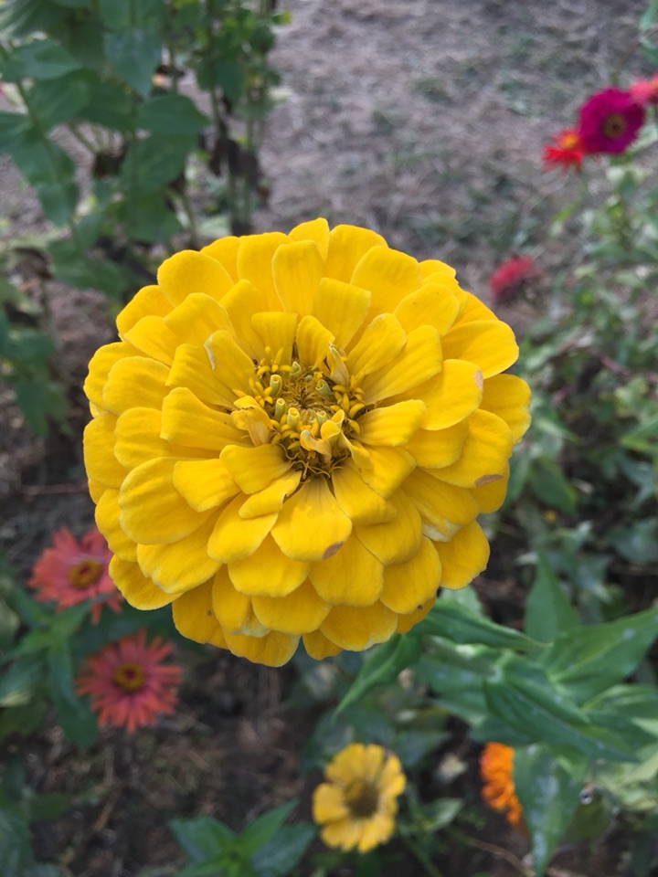 气温下降厉害,百日菊依旧盛开着,颜色鲜艳,是秋日里难得的美丽。