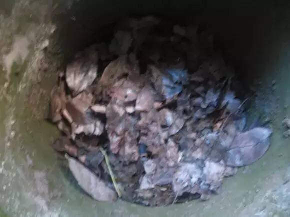 7.再盖上一层4-5cm左右园土,放入8-10cm厚的落叶,喷水,放橘皮、柚子皮,如此循环往复。注意:叶子叠加层不能超过4层否则不利于发酵分解。
