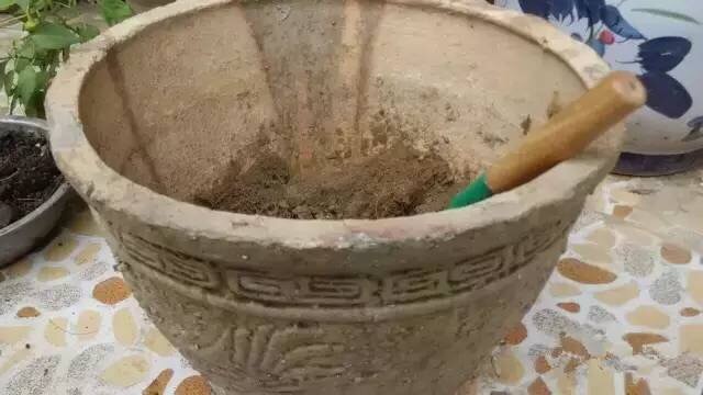 4.把花盆底部铺一层普通的园土。