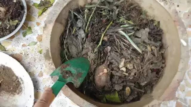 16、将摘下来的菜叶、吃剩下的水果皮、以及鱼头和鸡毛之类的废料,可在园地中挖一个坑一层废料一层土的填埋好后,浇一次透水,再盖上土,蒙上塑料膜,经过半年的腐熟发酵后,各类菌群相继繁殖完后,将其挖出后装塑料袋中密封保存留用。使用时,将腐熟的有机肥一份,和三份园田土掺匀后栽植花木,效果很好。