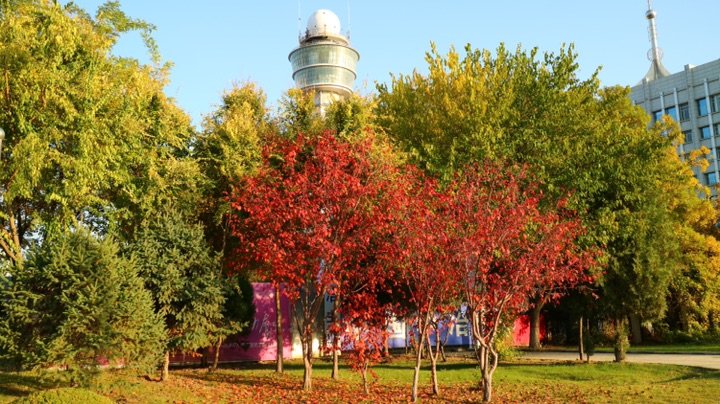 秋日色彩斑斓的树木