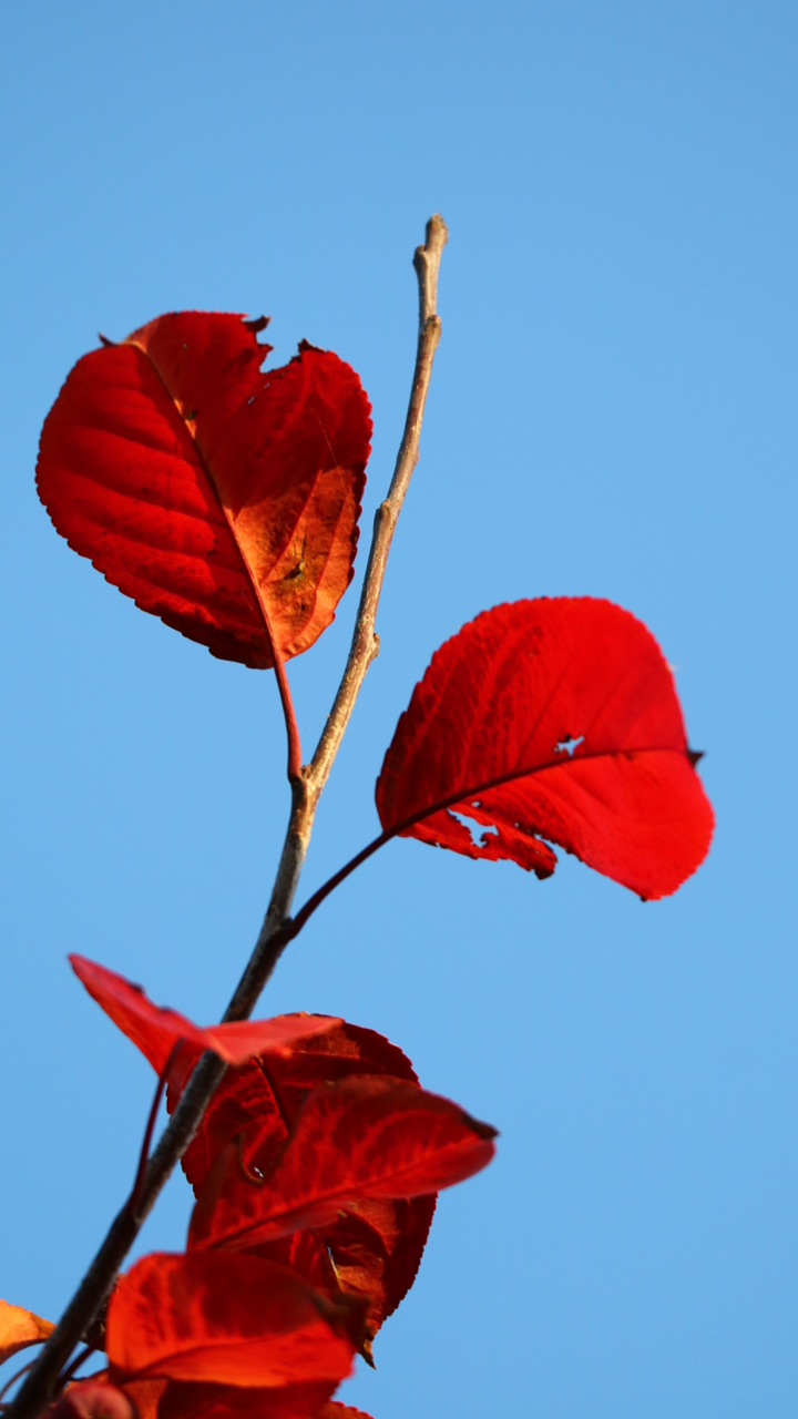 秋到叶红、叶落。