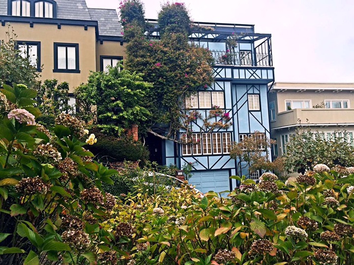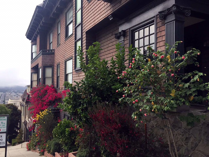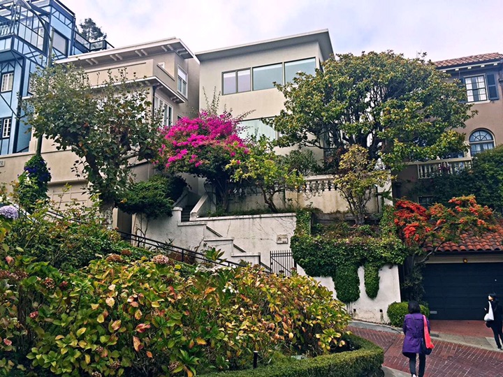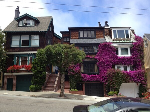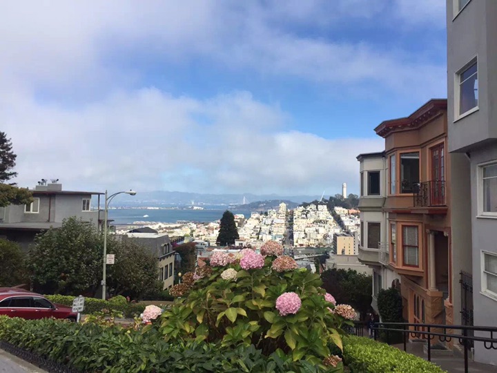 后来去了Lombard St,也就是九曲花街,美的挪不开脚,感受到了什么叫真正的“面朝大海,春暖花开”。 不说话,直接上图了。大家帮忙来识别下这些上墙的都是什么花