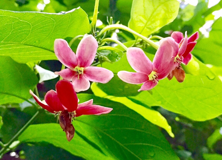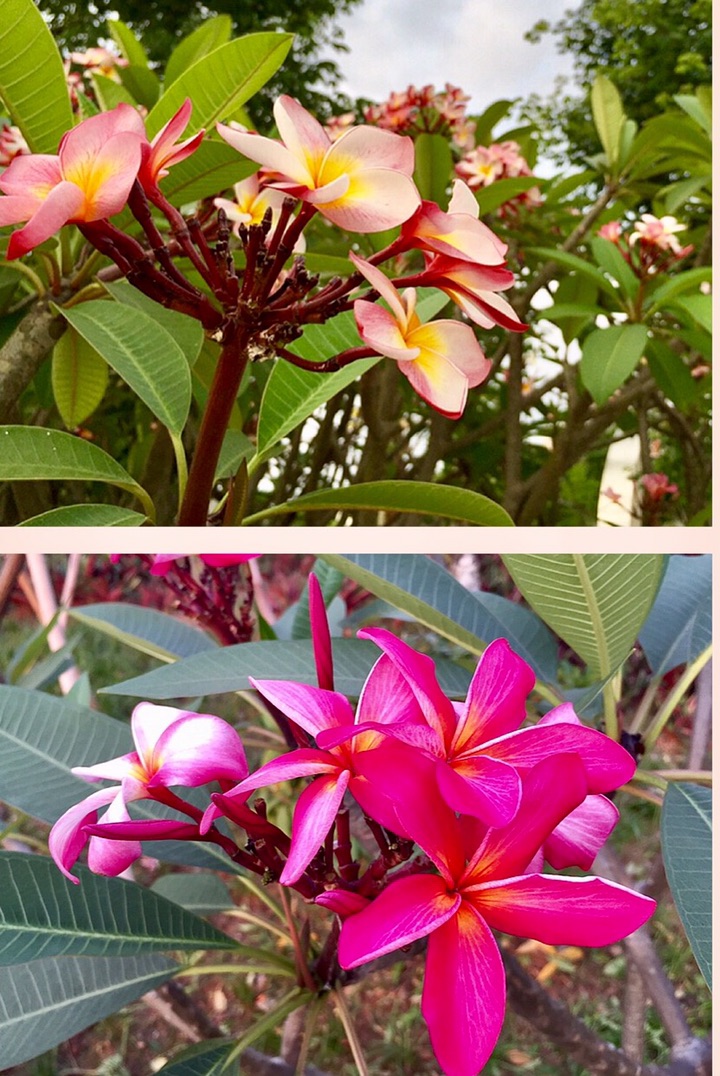 也曾观察过红花鸡蛋花,在经历了风吹雨打之后,红色慢慢减退,变浅,变白。