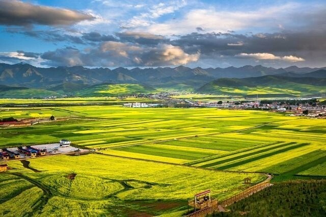 每到七月,门源便化身为一片金色的海洋,包裹在草原中,绽放在雪山下。微风吹过,层层金色的花浪涌动,宛如童话世界。