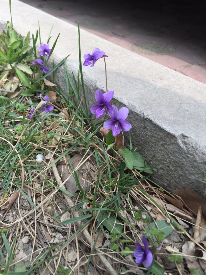 偶然发现单位砖缝里、草地上星星点点的紫色小野花,生长的很蓬勃,生机盎然,很是欣喜~通过形色认识了新物种:紫花地丁