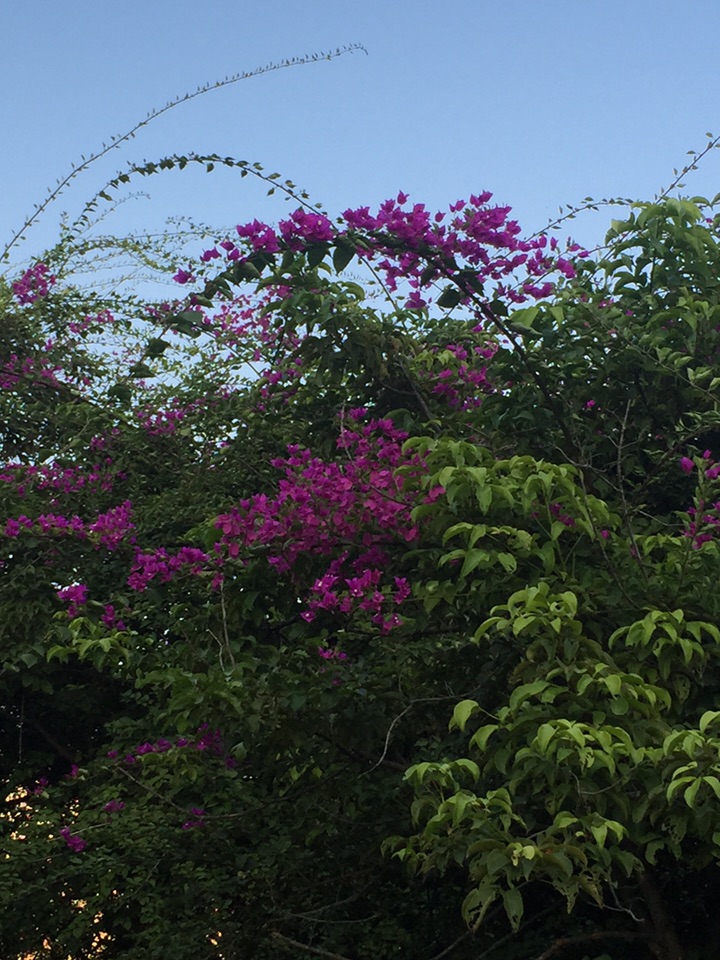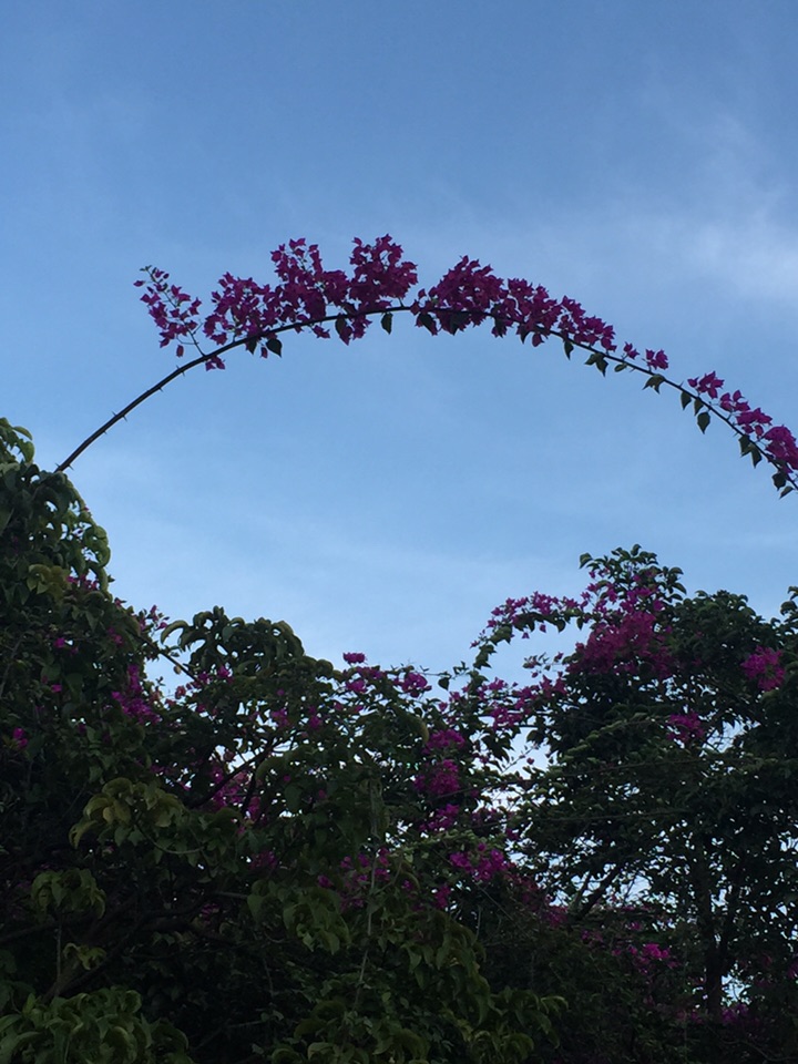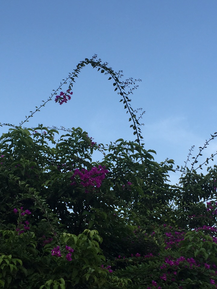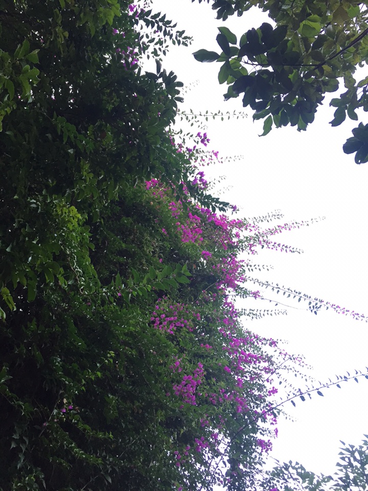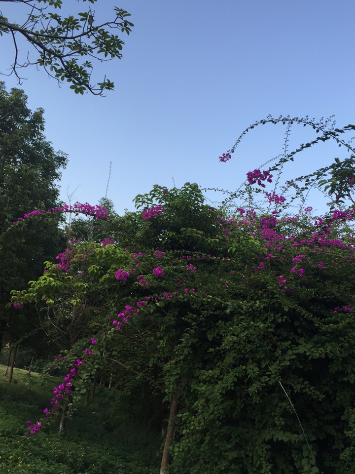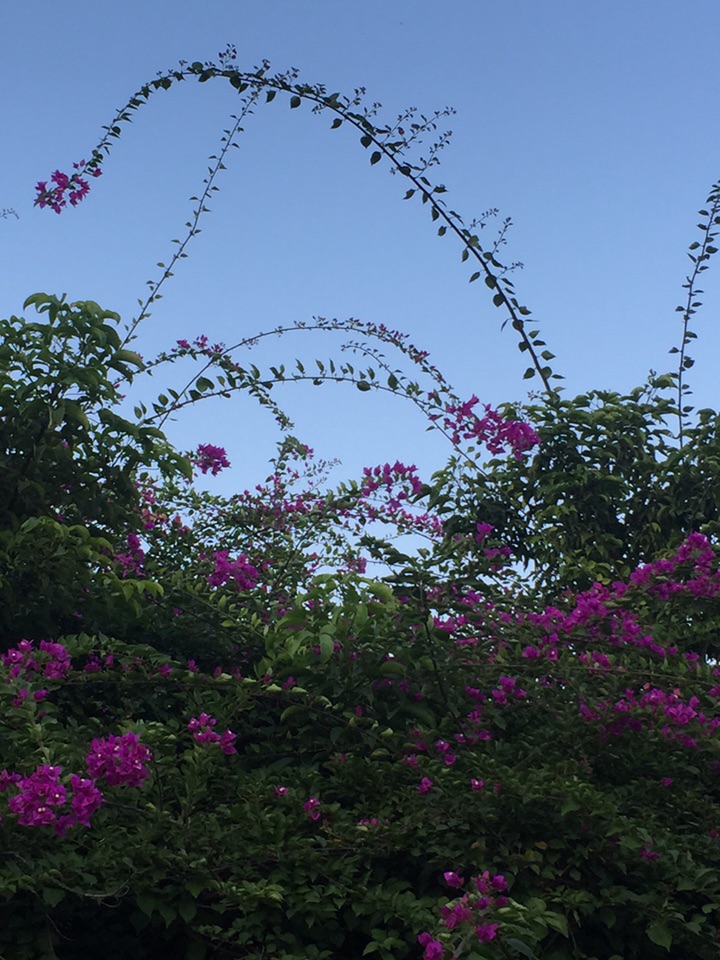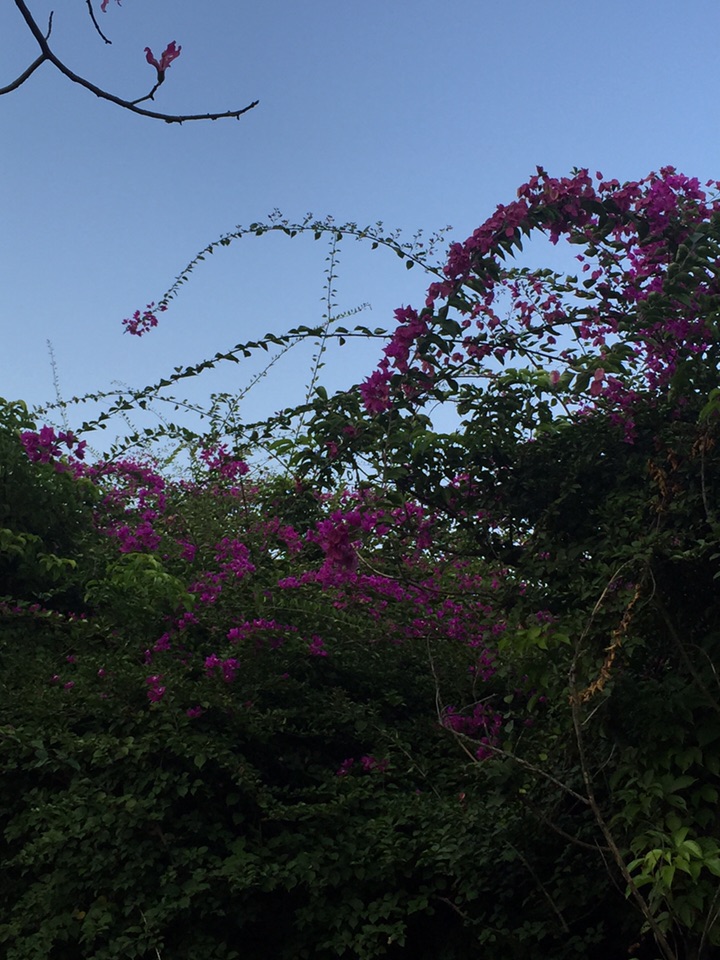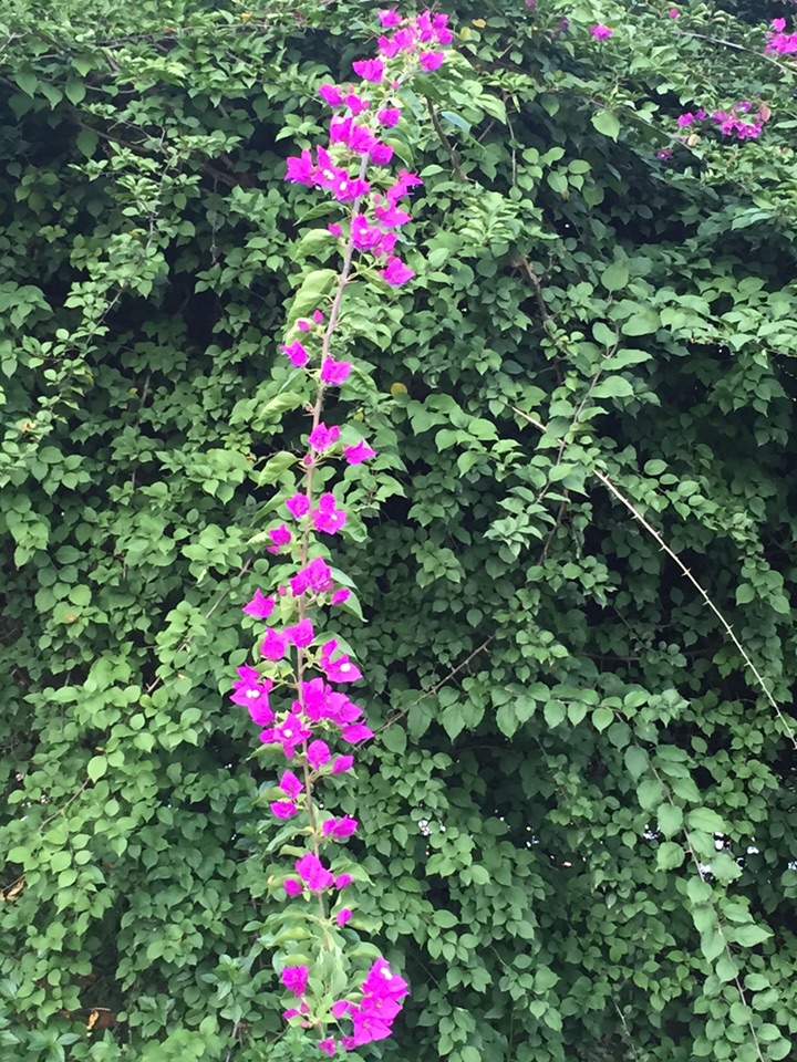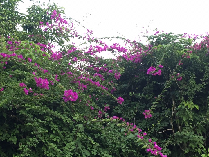 叶子花是常见的花儿,我们这里习惯叫三角梅。我觉得它好像一年四季不分季节地开花。反正,走哪都能看到它。但今天看到特别喜欢的颜色,而且它们的状态特别好,简直是旁若无人尽情地争奇斗艳。