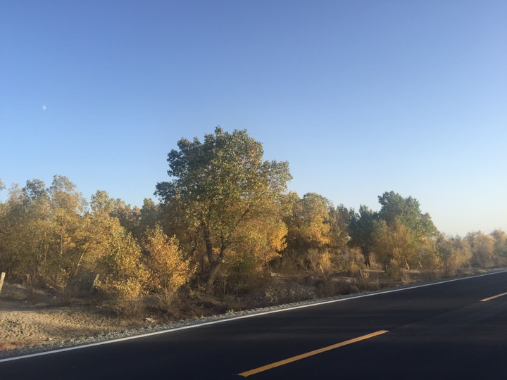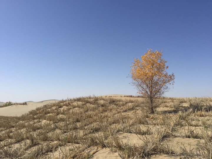 胡杨,没有去到胡杨林公园,所以没有看到倒下一千年不朽的枯木,但是有沙漠中奋力生长的胡杨