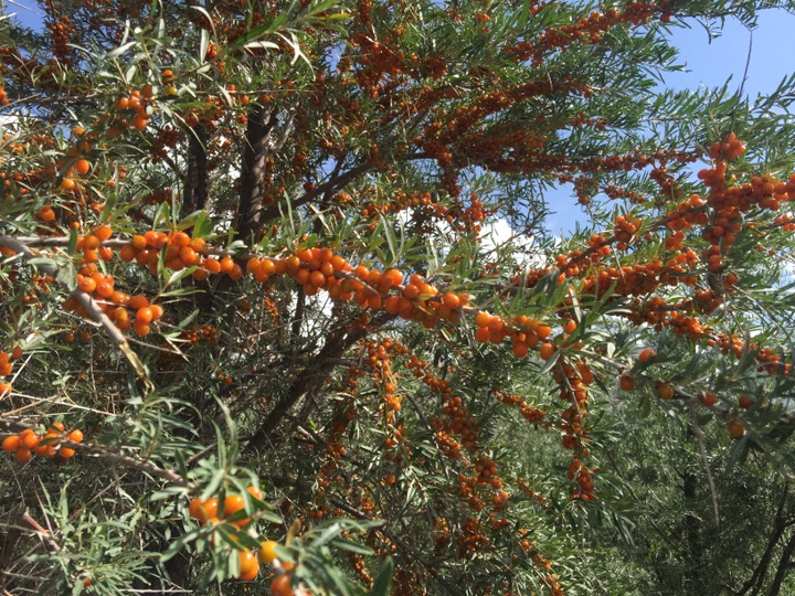 下图是沙棘,应该是野生的吧,离沙棘公园挺近的路边看到的,好酸,估计还不太熟