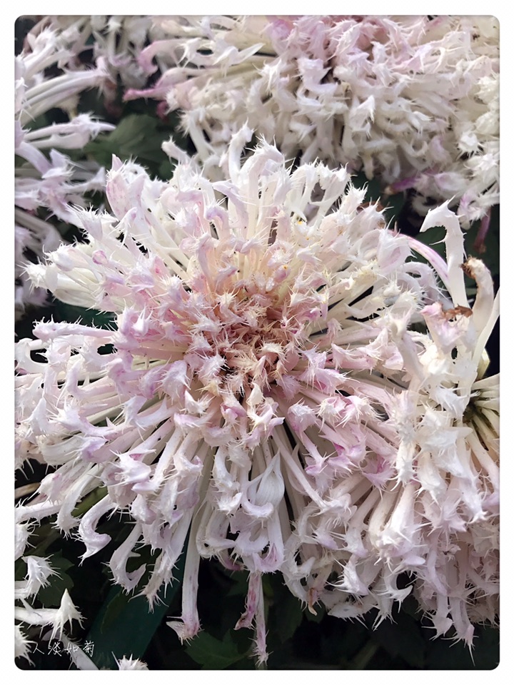一款与众不同的菊花,长着看似扎人实则柔柔的刺。让我眼前一亮,这是菊展上唯一让我拍了组照的菊。