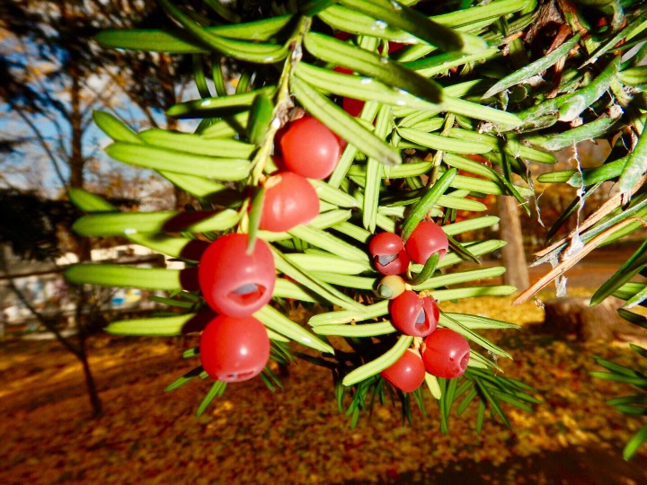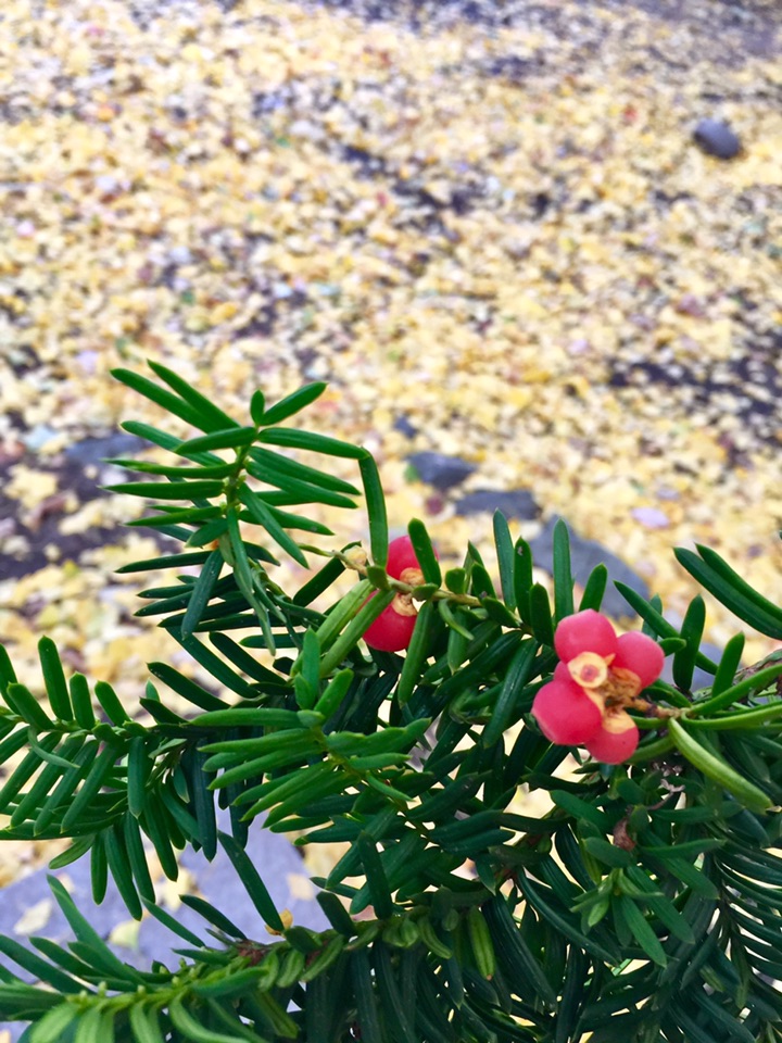 甜甜的味道,在深秋时节和红豆杉树的翠绿,咏出秋天生命华章