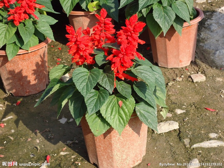 1.播种繁殖一般以3—6月播种。种子较大,1克种子260—280粒。发芽适温为21—23℃,播后15—18天发芽。若秋播可采用室内盘播,室温必须在21℃以上,发芽快而整齐。低于20℃,发芽势明显下降。另外,一串红为喜光性种子,播种后不需覆土,可用轻质蛭石撤放种子周围,既不影响透光又起保湿作用,可提高发芽率和整齐度,一般发芽率达到85%—90%。