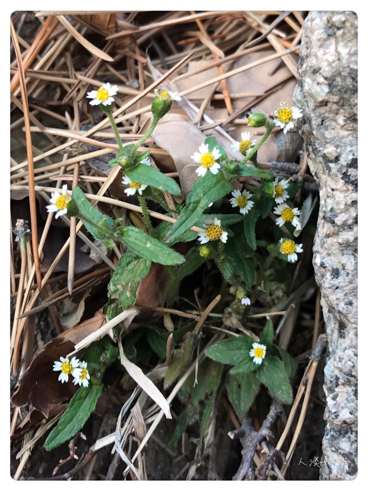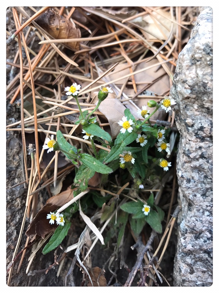 在千山(辽宁鞍山)八小时的徒步旅行中,在北方秋风萧瑟的深秋季节里,牛膝菊是我唯一遇见的开花植物,它在一处朝阳石阶的缝隙中,依旧灿烂地开着,终于实现了我想在山上遇见花的愿望。