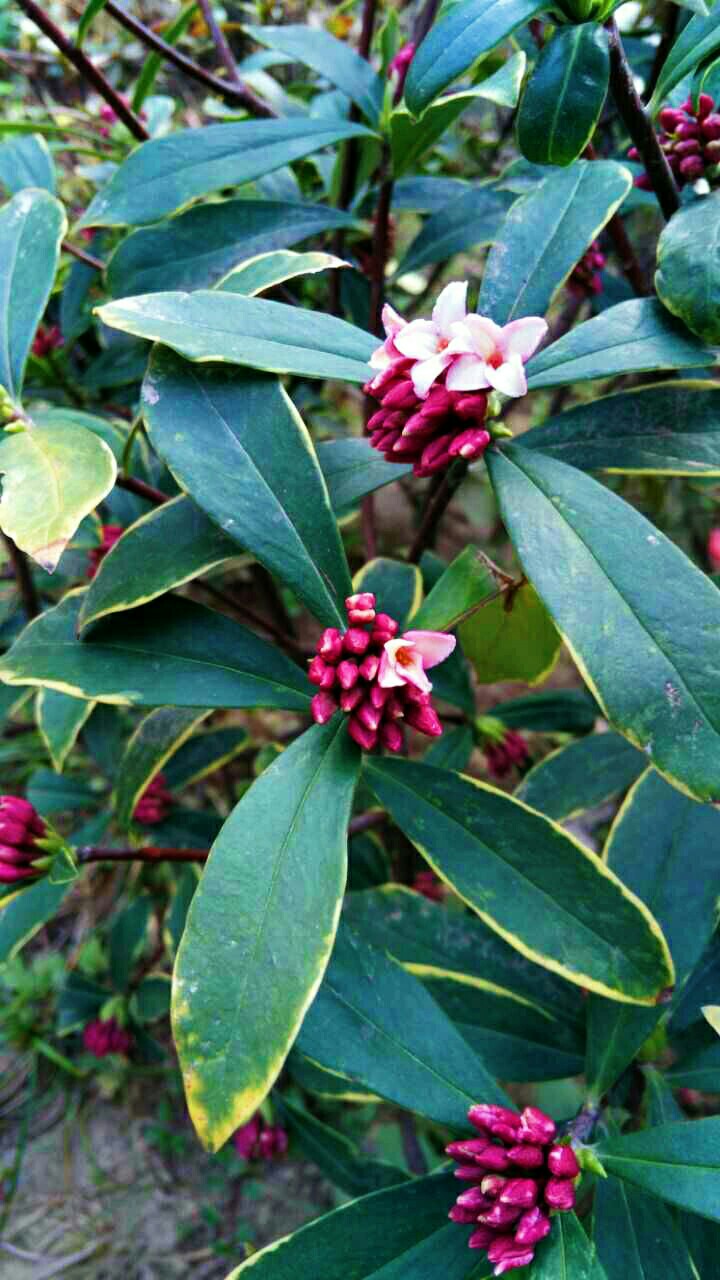 人自然要比猴子聪明点,古人早就知道以各色花木开放时间来与每年十二个月对应,以记物候,以应农时,最著名者当然是《月令》和“二十四番花信风”,但是从更具实用价值而论,当推明人程羽之的《花月令》。比如,在 “二十四番花信风”中,瑞香花乃是大寒“三候”的第一候,彼时,江北时有雪飘,江南连日冷雨,瑞香恐怕是开不了的,除非种植于温室。因此《花月令》中总结说“正月,兰蕙芬,瑞香烈,樱桃始葩,径草绿,望春初放,百花萌动”,这恐怕更得其实,谓予不信,如图所示,正月的汉中,瑞香花开的颇为繁盛。