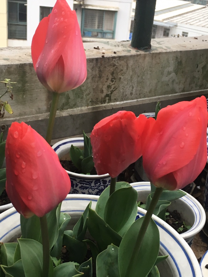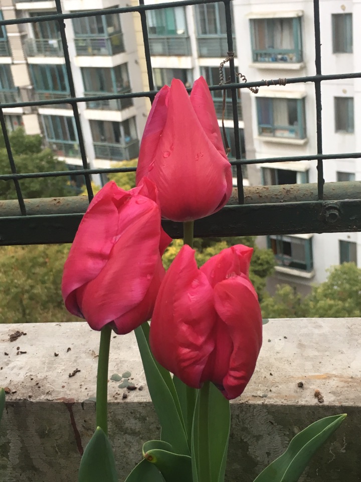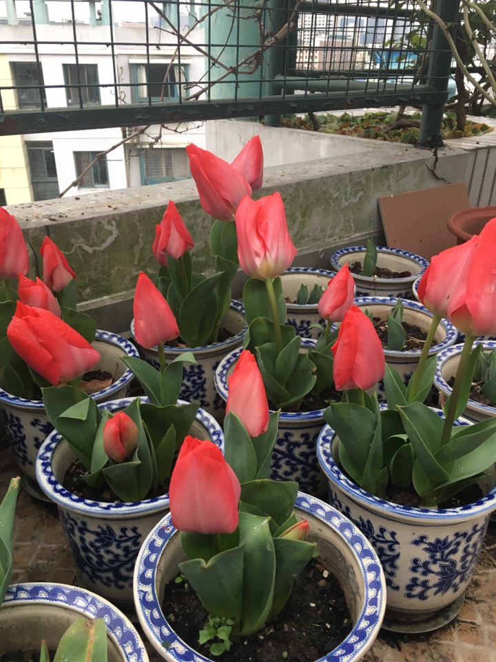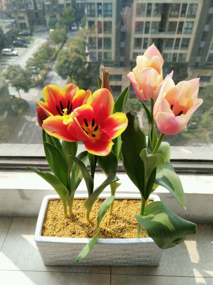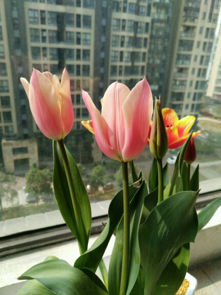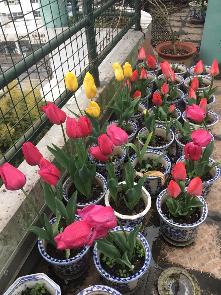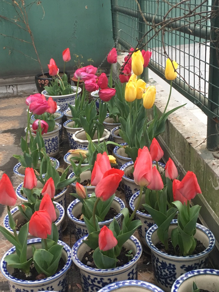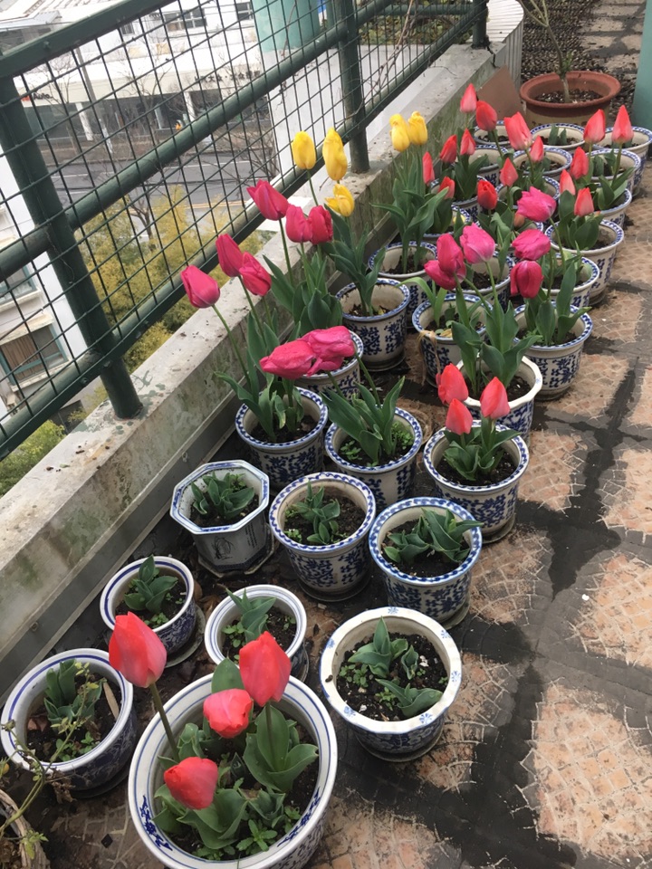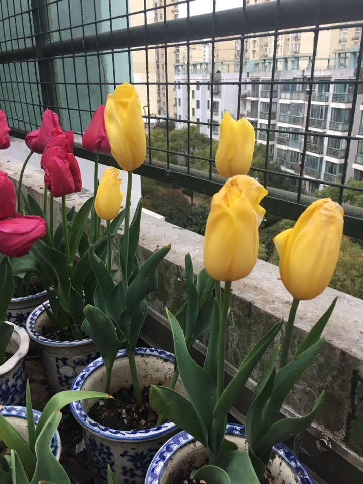 四个花色的郁金香,开了三种。黄色是二月底开的,开了快持续一个月。两种红陆续开放。