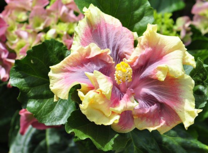 扶桑花的学名叫朱槿,是中国绝大部分地区都可以种植的花卉,由于朱槿的生命力顽强和美丽长时间的开花期,随意扦插就可以种植成活,也是老百姓最喜欢的花卉。从下面的图片中,你可以看到最全的扶桑花图。有大红的、降红色的、粉红色的、黄色、白色、混色的,花型有单层、多层,单蕊柱、多蕊柱的,还有不同柱头颜色的,也有花瓣形状的巨大差异……