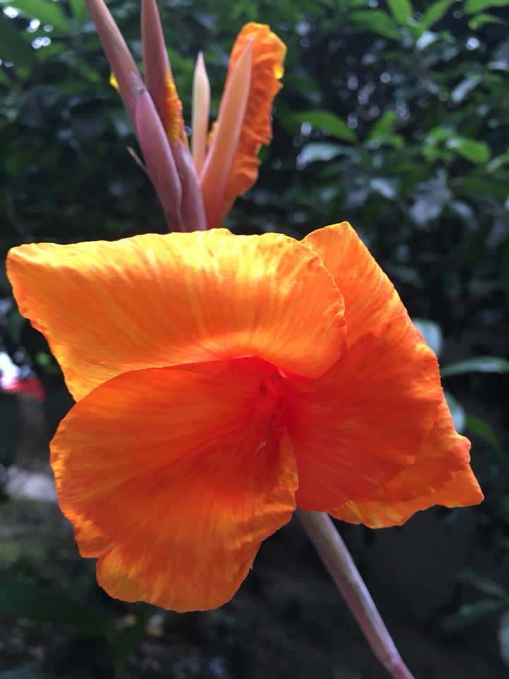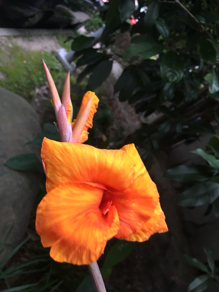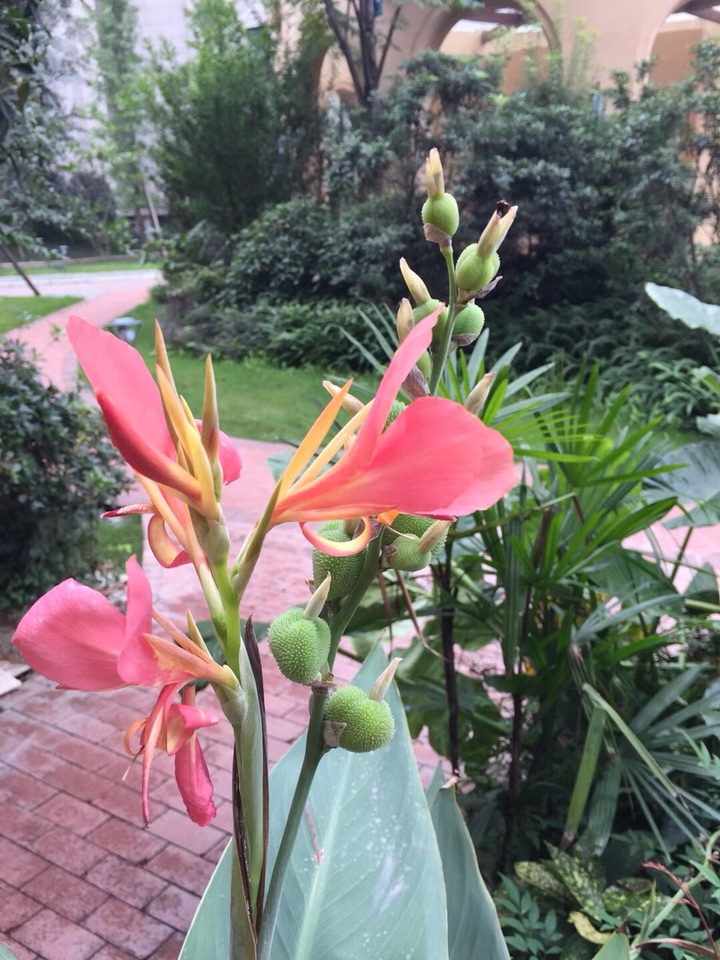 常看到公园小区里路边有美人蕉,花有橘红色的,有黄色的,偶尔还看到粉色的。