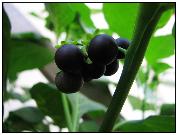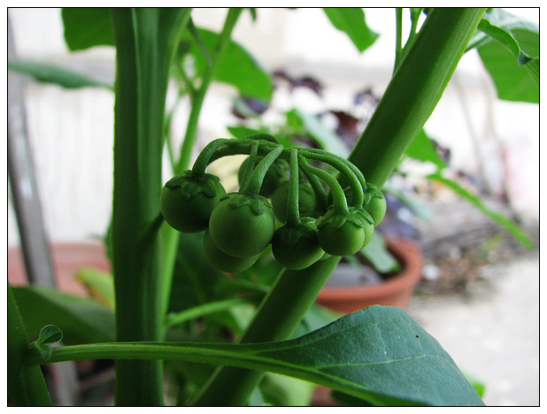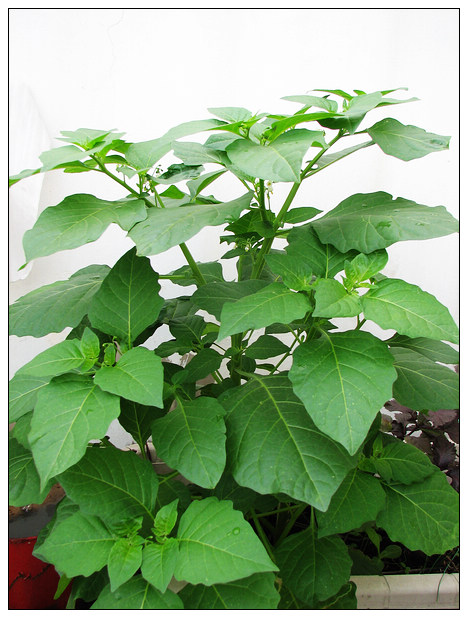 夏天快要过去的时候,也许是肥料太过充足,它竟然长到了一米半之高,被狂风暴雨吹倒在地上,等到被发现扶起来的时候,它已经打算就那么横着长了。植株长得壮,果子也结的比野外的大一些,一串串竟然也沉甸甸的,成熟高峰的时候,竟然最多能摘小半盆。摘了给家孩,看他吧唧吧唧吃的不亦乐乎,好像又找回到了小时候的回忆。"